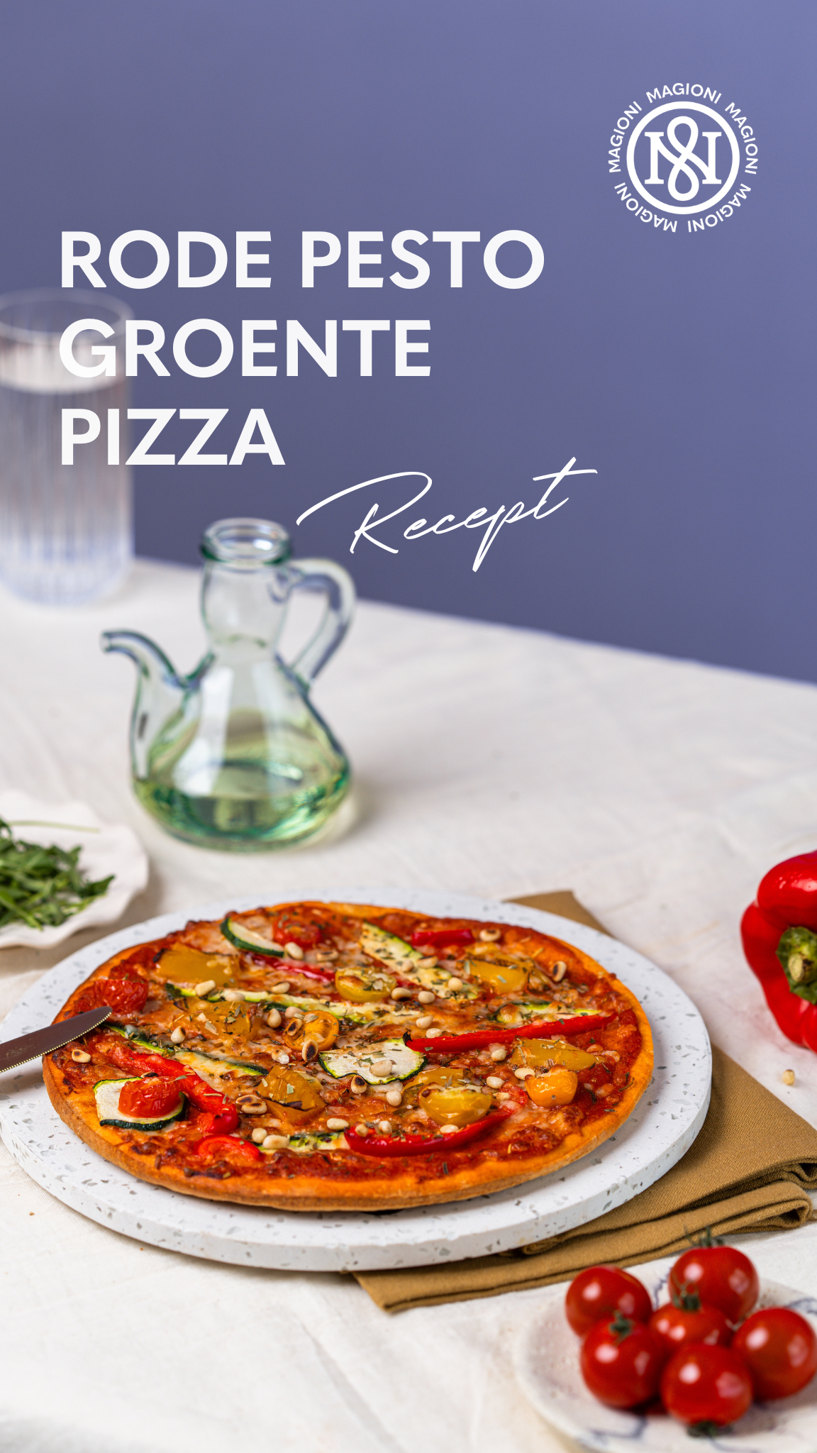 Topped with creamy red pesto, fresh vegetables, and melted mozzarella, this recipe is sure to make you happy. The crispy Magioni pizza crust, made with 45% cauliflower, rich in fiber, and 15 grams of protein, makes it not only nutritious but also irresistibly delicious. Perfect for weekdays or an easy weekend dinner.