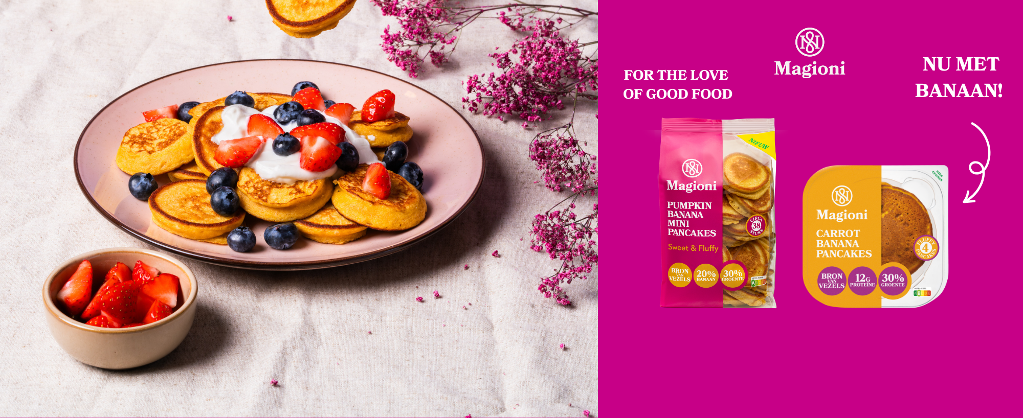Zin om te proeven? Je vindt de Pumpkin Banana Mini Pancakes en Carrot Banana Pancakes vanaf deze week in het koelschap bij de Albert Heijn of bestel ze online via Picnic.
