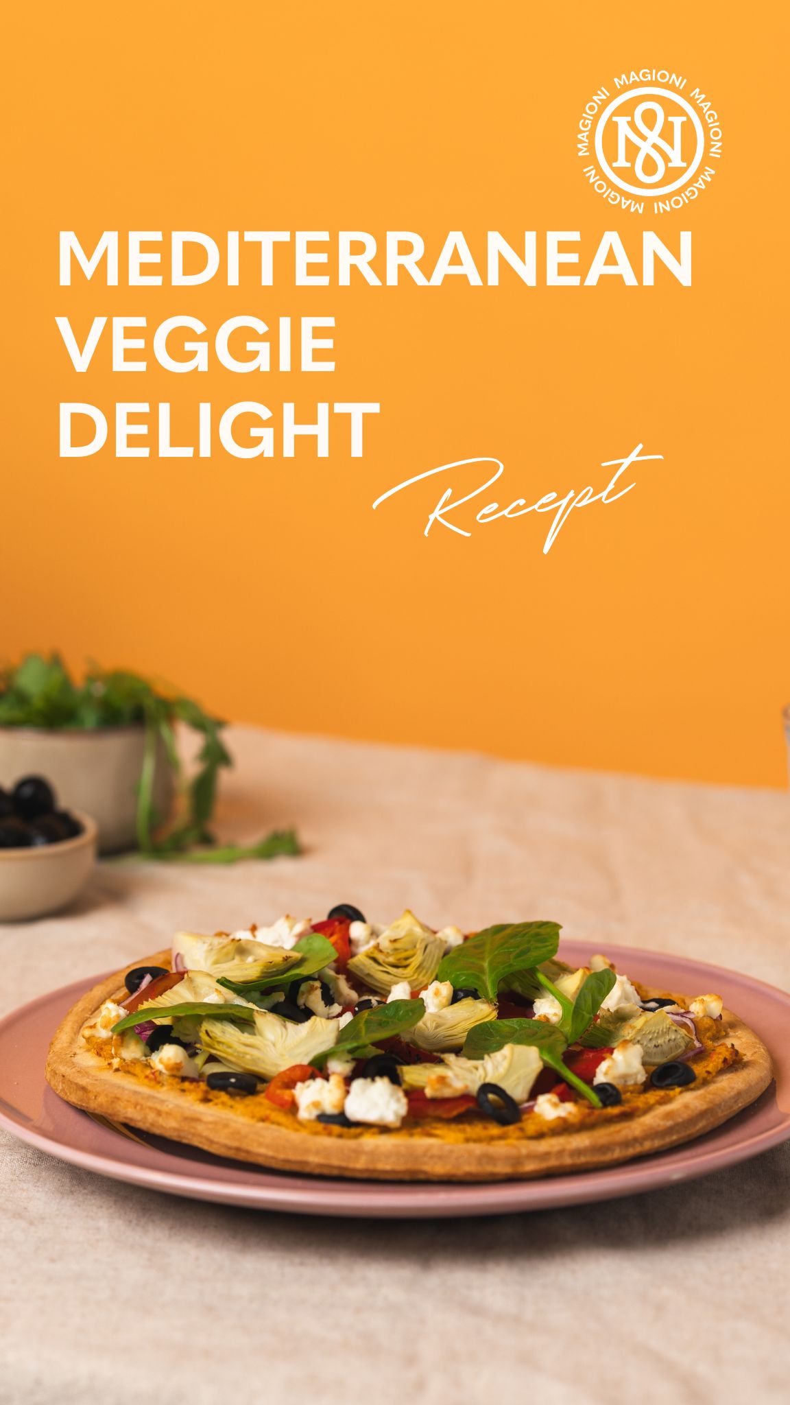 Op de Magioni bloemkoolbodem smeer je een romige laag hummus en beleg je met geroosterde paprika, artisjokharten, olijven en frisse spinazie. Afgetopt met feta en rode ui is dit een verantwoorde maal en tegelijkertijd ook heerlijk als comfortfood.
