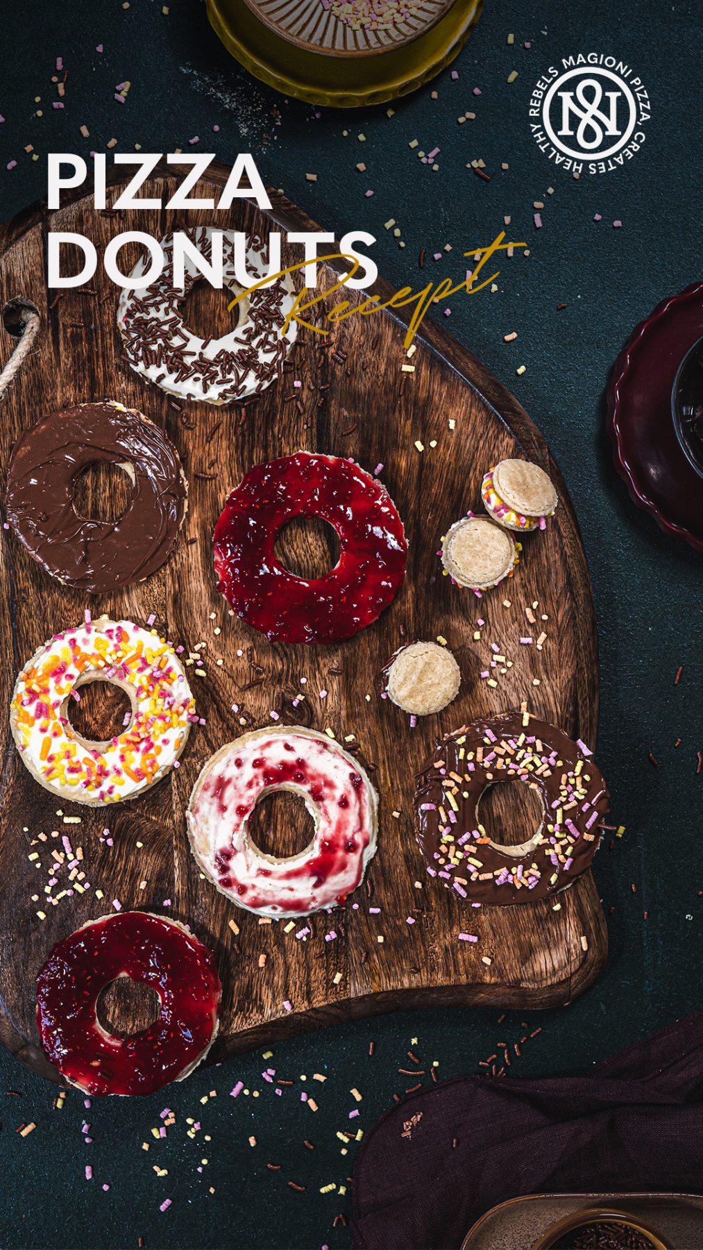 Heb jij een kleine chef thuis? Of kun je zelf niet kiezen tussen donuts en pizza? Deze pizzadonuts zijn een feest om te maken, naar te kijken en natuurlijk op te eten. Versier ze met verschillende kleuren toppings voor een extra feestelijk effect.