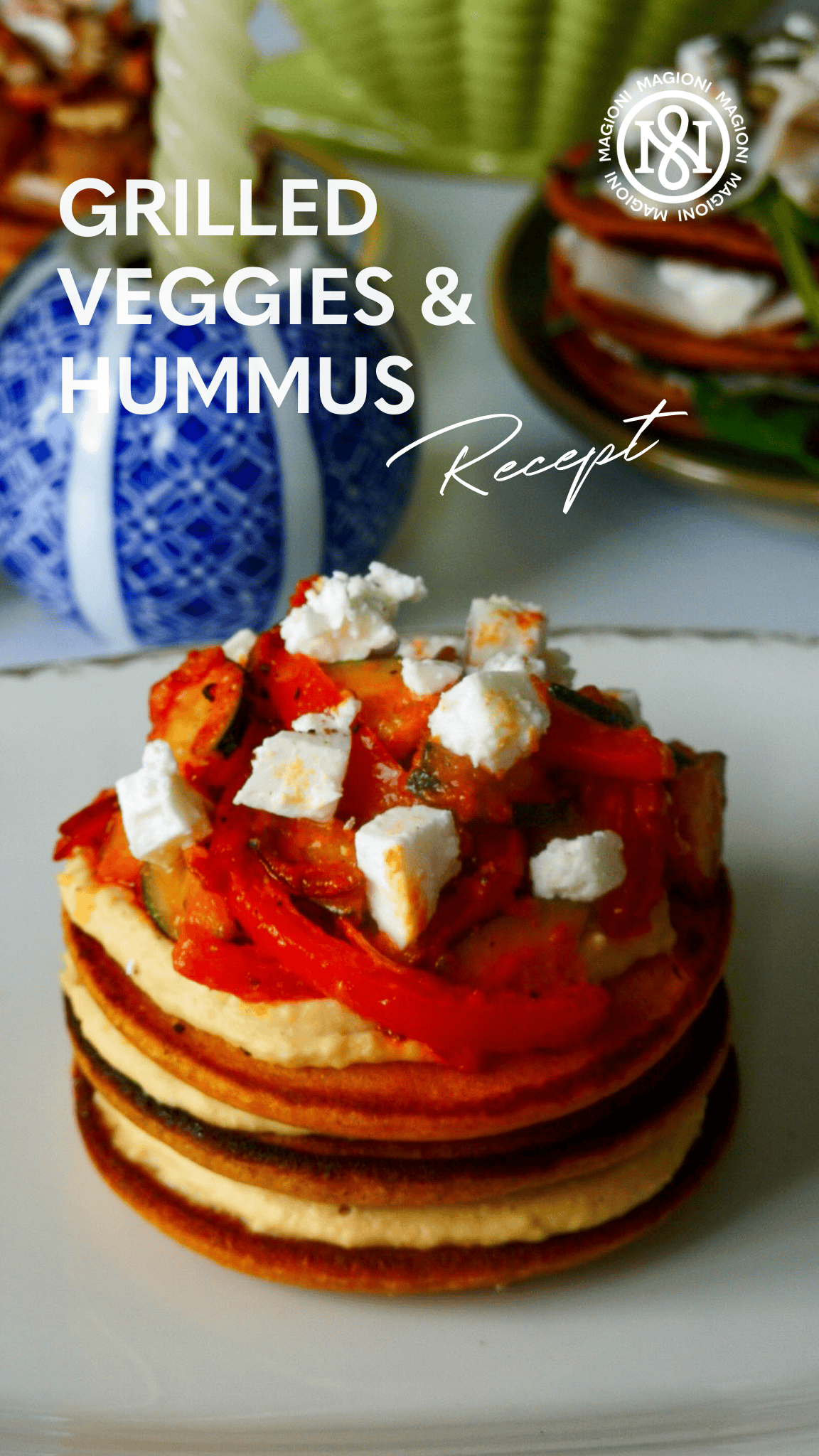 Het bijzondere aan dit gerecht is de zorgvuldige balans tussen zoet en hartig. De pompoenpannenkoeken zijn heerlijk luchtig en hebben een natuurlijke zoetheid door de pompoen, die perfect wordt aangevuld door de subtiele warmte van kaneel. Samen vormen ze een smaakvolle basis die goed past bij de hartige elementen van dit gerecht. De hummus voegt een romige, licht nootachtige smaak toe die het gerecht helemaal in balans brengt. Daarnaast zorgen de geroosterde groenten – zoals paprika, courgette, rode ui en wortel – niet alleen voor een kleurrijke presentatie, maar ook voor een diepere, intensere smaak door het roosteren. Elke groente krijgt een licht gekarameliseerde rand, wat de smaken nog rijker en intenser maakt.