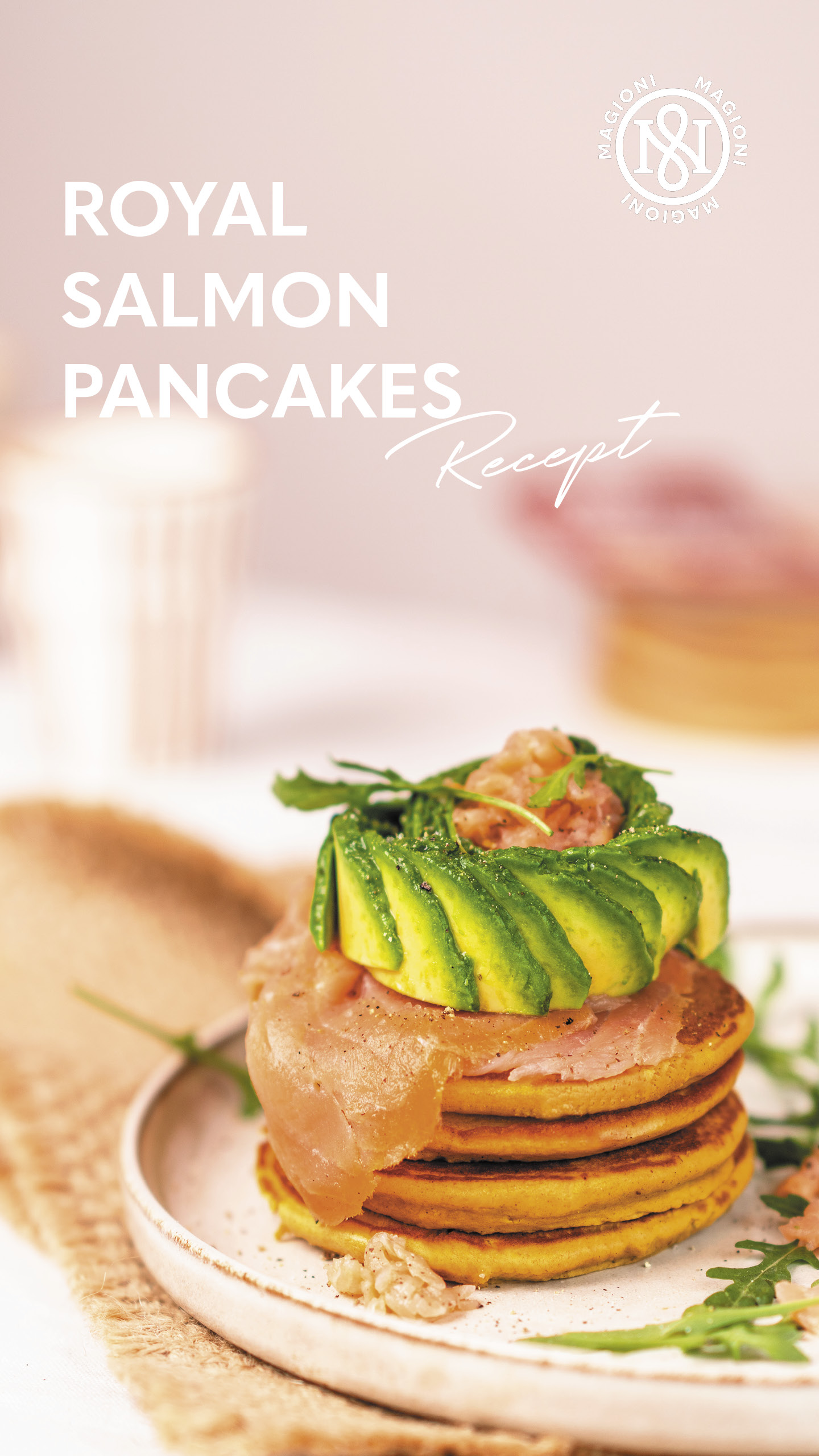 3. Stapel de pancakes op elkaar. Verdeel wat gerookte zalm on-top.